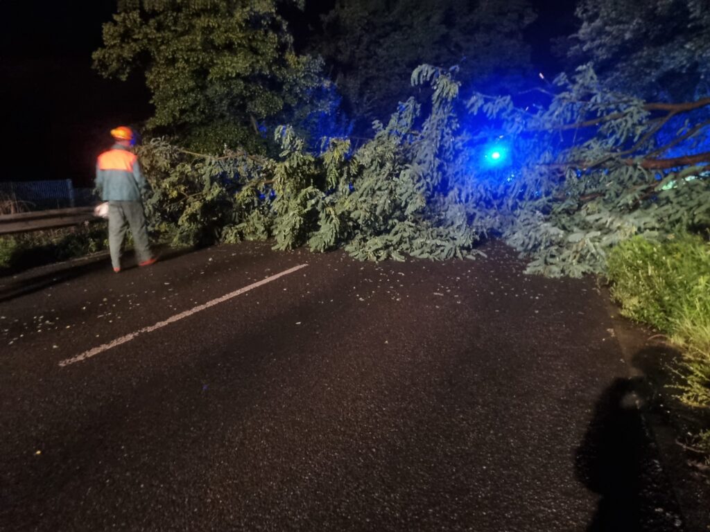 Montag, 24.07.2023, 01:31 Uhr – In der Nacht von Sonntag auf Montag haben zwei umgestürzte Bäume die B57 zwischen Birten und Xanten blockiert. Die Einsatzkräfte der Löschgruppe Lüttingen waren schnell vor Ort, sorgten für die Sicherheit der vorbeifahrenden Fahrzeuge und sorgten für eine ausreichende Ausleuchtung. Mit einer Kettensäge wurden die umgestürzten Bäume zügig zersägt und die Straße von den Trümmern befreit.